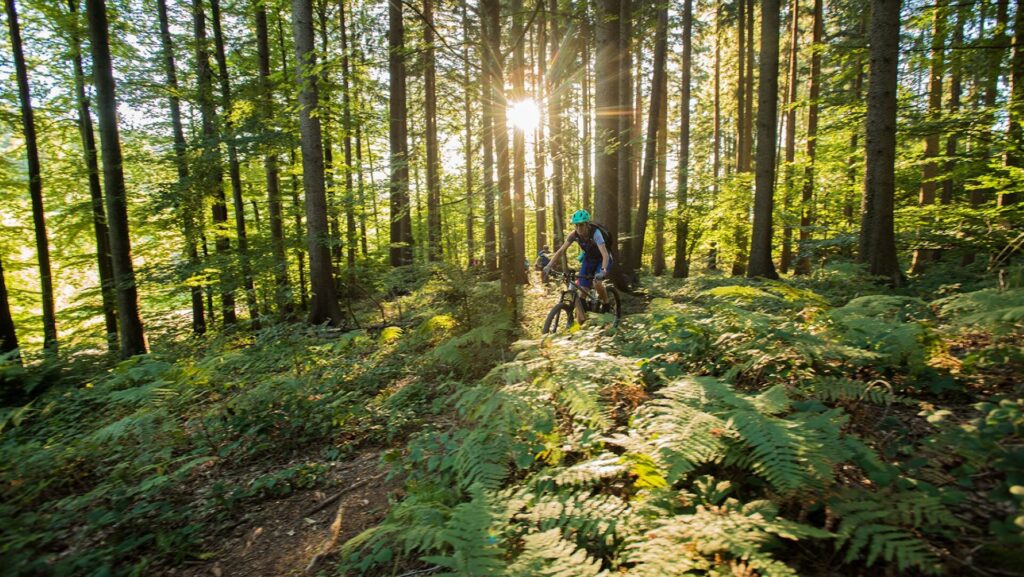Natürlich ist die Bike-Community in den letzten Jahren kontinuierlich gewachsen, natürlich spielt die Elektrifizierung des Velos hierbei eine Rolle. Gleichzeitig entspricht es einem Bedürfnis der Massen, nach vollbrachtem Tagwerk oder am Wochenende im Wald eine Bike-Runde zu drehen. 2022 fuhren 10,9 Prozent Schweizerinnen und Schweizer im Alter von über 15 Jahren Mountainbike; der eindrückliche Wert dürfte mittlerweile noch höher geworden sein. Es ist kein Zufall, verpflichtet das Anfang 2023 in Kraft getretene Veloweggesetz landesweit sämtliche Kantone und Gemeinden explizit, bis Ende 2027 attraktive Mountainbike-Wegnetze zu planen.