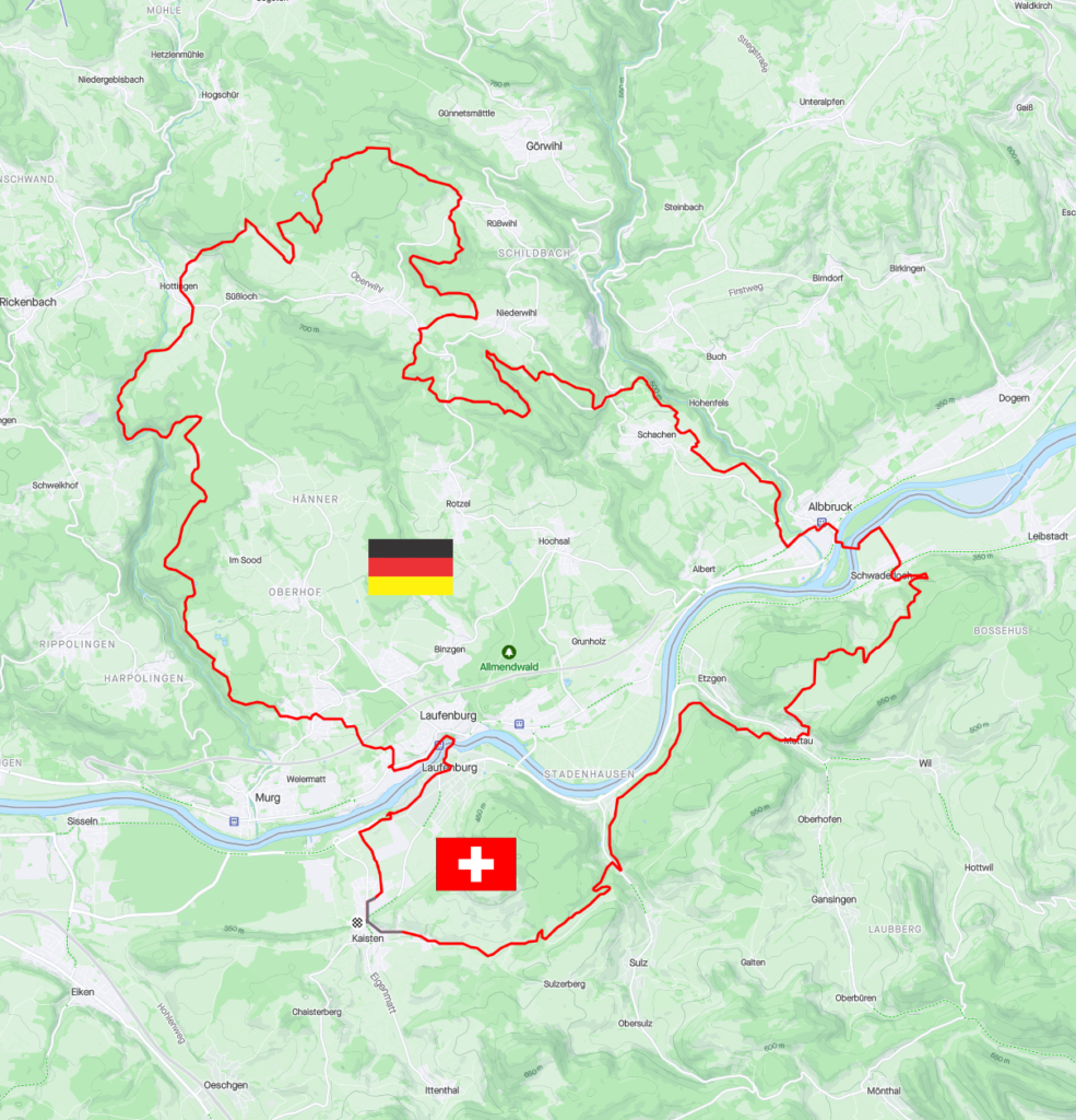 Wie unschwer auf der Karte ersichtlich, führt ein Grossteil der Strecke durch die Wälder unseres nördlichen Nachbarlandes.