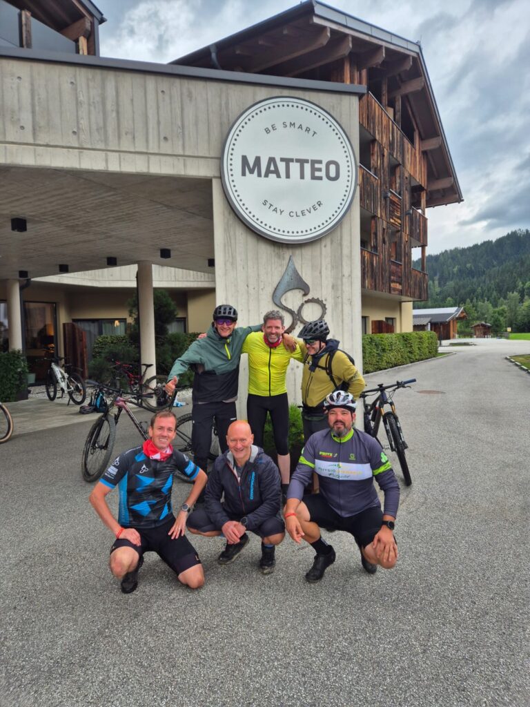 Wir haben mit knapp 3 Stunden Verspätung um 20:30 Uhr unser Hotel Matteo (Ziel) in Flachau wieder erreicht. 90 Kilometer und über 2’700 Höhenmeter später sind wir erleichtert und todmüde zum Nachtessen und Kalorien auftanken wieder zusammen vereinigt.