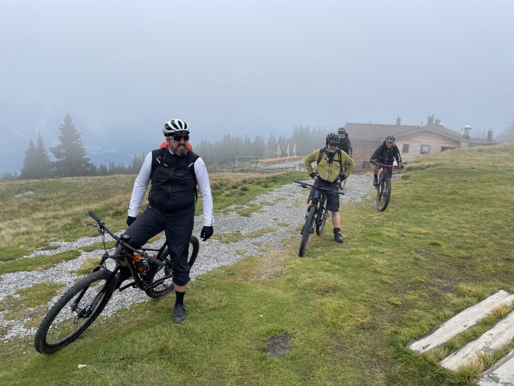 Jetzt ging es tatsächlich nur noch runter und zurück zum Ausgangspunkt in Flachau zum Hotel Matteo. Am zweiten Tag haben wir 65 Kilometer / 1800 Höhenmeter zurückgelegt und ganz wichtig – wir konnten alles im Sattel, sprich auf dem Bike fahren.