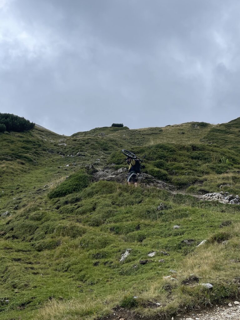Jawohl, der Wetterbericht hat nicht getäuscht. Die Wolken haben sich nun langsam verzogen und es zeigte sich sogar teilweise die Sonne. Zweiter Stempel reingehauen und gleich weiter Richtung Checkpoint *FORSTAU*. Das war ein kurzes Teilstück mehrheitlich auf befestigtem Strassenuntergrund. Kurzer Essenstop, weil danach das Tagesziel auf über 2’100 Metern über Meer folgte. Der Checkpoint *OBERHÜTTE* mit Schiebe- und Tragepassagen. Nochmals ein Monsteraufstieg mit knapp 1300 Höhenmetern am Stück. Wie sich aber später herausstellte, waren die Höhenmeter das kleinere „Problem“…