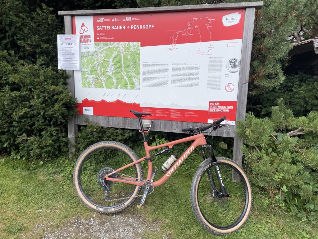 Erstaundlich gut erging es mir aber beim hochkurbeln zum Penkkopf. Stempel reinhauen und dann den Trail runter Richtung Berghütte. Wowww, grosse Überraschung auf dem Weg zur Hütte. Denn plötzlich mündete der Trail in einen Flowtrail mit geilen Anliegerkurven. Da kam doch tatsächlich ein Grinsen auf und die Tiefenmeter flogen nur so dahin. Kurzer Stopp bei besagter Hütte und weiter zum allerletzen Checkpoint *SATTELBAUER*. Das war wohl das längste Teilstück auf unserer Stoneman Taurista Tour 2025.