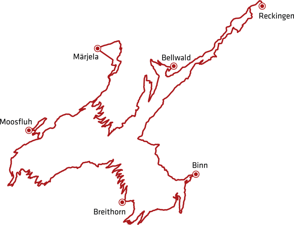 Nun sieht das Streckenprofil ein Auf und Ab über Ernen, Mülebach nach Reckingen vor. Eigentlich nichts Wildes, das Breithorn und die anderen Steigungen sind doch geschafft… Der nächste und letzte Abschnitt ist jedoch nicht zu unterschätzen. Die Strecke zieht sich immer mehr in die Länge und mittlerweile sind über 10 Stunden knochenharte Arbeit in den Beinen, Muskeln angekommen. Der innere Schweinehund will sich schon wieder anmelden aber ich „schalte“ instinktiv auf Durchzug.